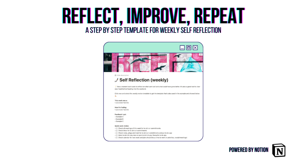 - Tips and templates for self reflection via a weekly review.